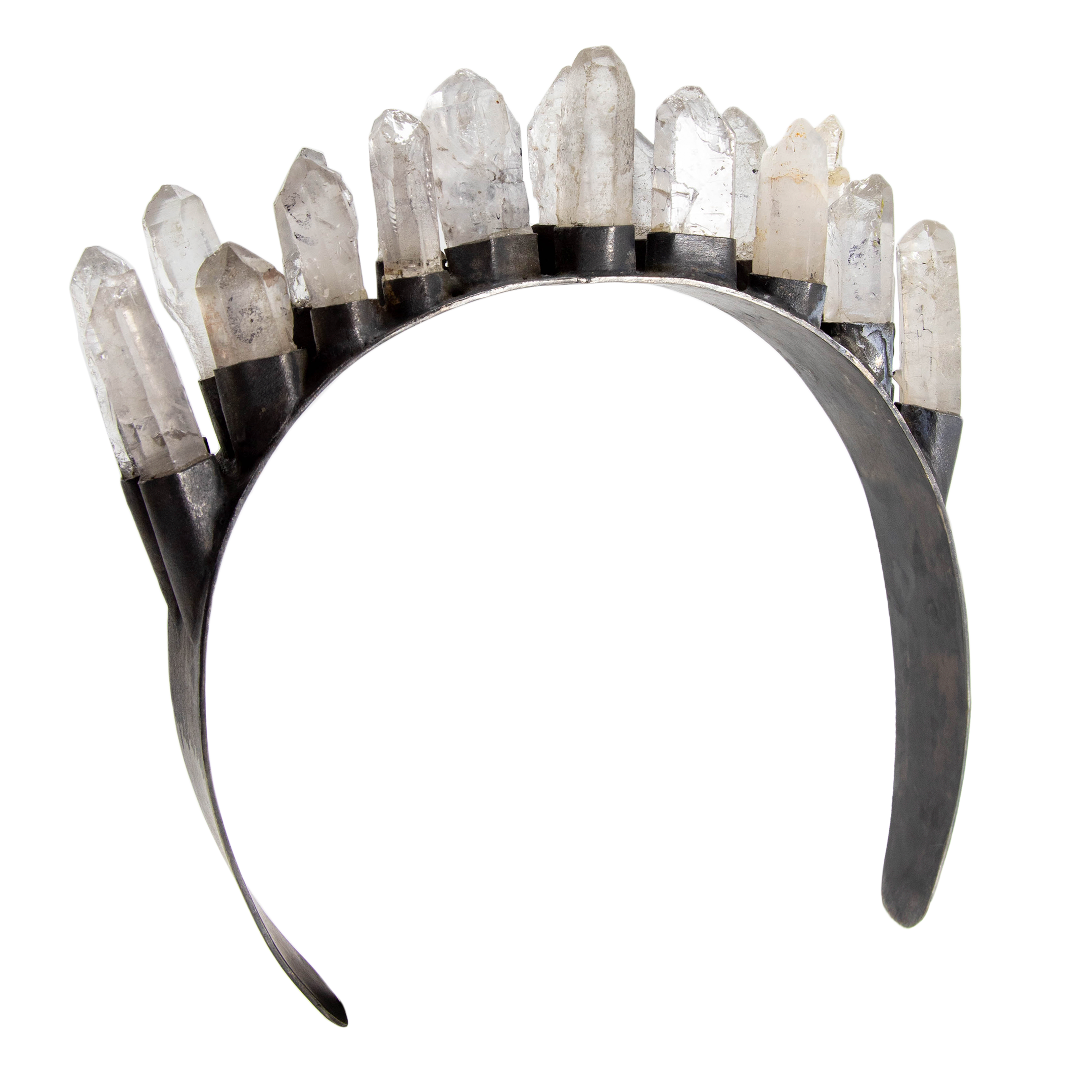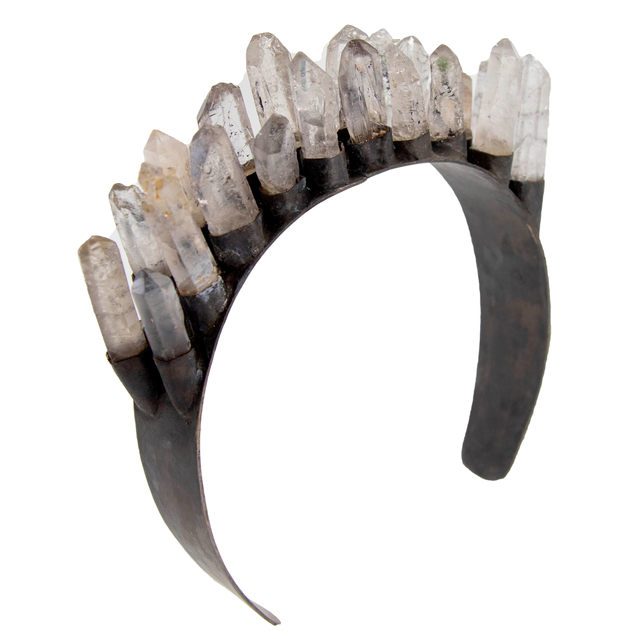 Diadema de latón oxidado con puntas de cuarzos rústicos.